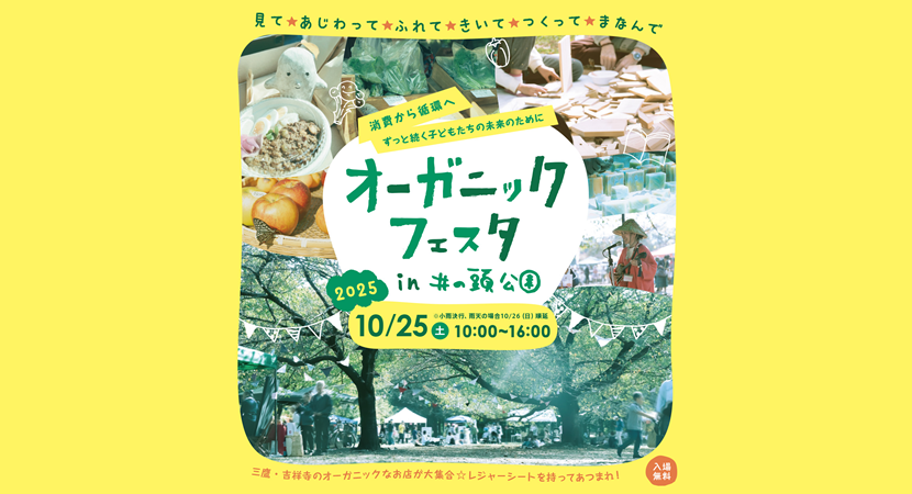 今年も「オーガニックフェスタ in 井の頭公園」に出店します。今回で3回目となります。